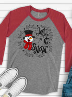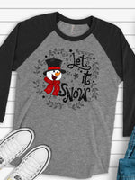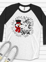 - Snowman Raglan 3/4 Sleeve, Super Cute Snowman with Let It Snow Design on premium Raglan 3/4 sleeve shirt, plus size, 2X, 3X