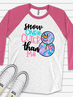 - Snowman Raglan, Snow One Cuter Than Me Tie Dye Snowman Design on premium Raglan 3/4 sleeve shirt, plus size, 2X, 3X