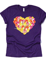 Spring Flowers Tee, Pretty Tulips in Heart Shape, Tulips Heart Design, premium unisex shirt, 3 color choices, 3x Tulips, 4x Tulips