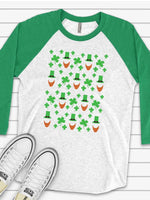 St Patrick's Day Raglan, Cute St Patrick's Day Leprechaun Hat and Beard, Clover Design on premium Raglan 3/4 sleeve shirt, plus size, 2X, 3X