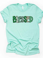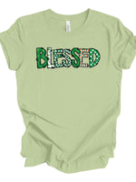 St Patrick's Day Tee, Super Fun BLESSED St. Patrick's Print Design on premium unisex tee, 3 color choices, 3x st patrick, 4x st patrick