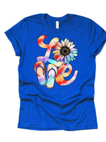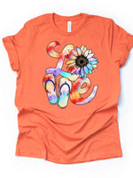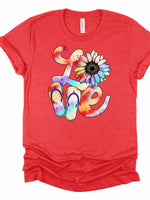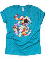 Summer Fun Tee, LOVE Summer with Tie Dye Sunflower and Flip Flops Design on premium unisex shirt, 2 color choices, 3x Summer, 4x Summer