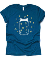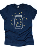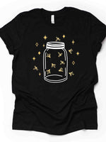 Summer Tee, Super Cute Jar of Lightning Bugs, Fireflies Design on premium Bella + Canvas unisex shirt, 3 color choices, 3x Summer, 4x Summer