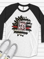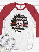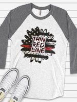 Support Firefighters Raglan, Firefighters Sunflower, Thin Red Line Sunflower Design on premium Raglan 3/4 sleeve shirt, plus size, 2X, 3X