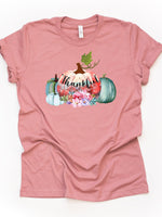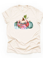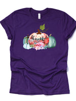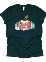 Thankful Tee, Pretty Pastel Pumpkins with Flowers, Thankful, Thanksgiving Design on premium unisex shirt, 3 color choices, 3x fall, 4x fall