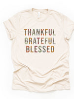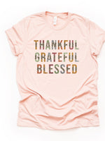 Thanksgiving & Fall Tee, Thankful, Grateful, and Blessed Leopard Print Design on premium unisex shirt, 4 color choices, 3x fall, 4x fall