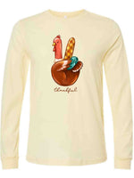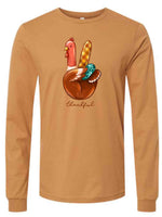 Thanksgiving Long Sleeve Tee, Cute Thanksgiving Turkey Peace Sign Thankful Design, premium unisex long sleeve tee, 3x plus size long sleeve