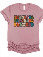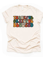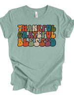 Thanksgiving Tee, Thankful Grateful Blessed, Retro Thanksgiving Tee Design on premium unisex shirt, 4 color choices, 3x fall, 4x fall