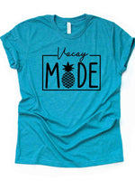 Vacation Time, Vacay Mode, Simple Vacation Design on premium Bella + Canvas unisex shirt, 5 color choices, 3x vacay, 4x vacay