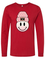 - Valentine Long Sleeve Tee, Fun Smiley Face with Beanie, Valentine Vibes Design on premium unisex long sleeve tee, 3x plus size long sleeve