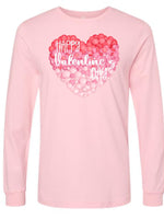 - Valentine Long Sleeve Tee, Ombre Heart with Happy Valentine's Day Design on premium unisex long sleeve tee, 3x plus size long sleeve