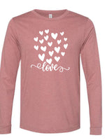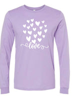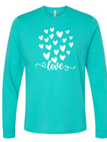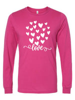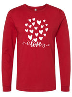 - Valentine Long Sleeve Tee, Script LOVE with Cute White Hearts, Love Heart Design on premium unisex long sleeve tee, 3x plus size long sleeve