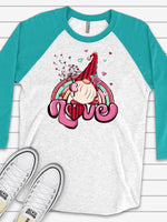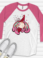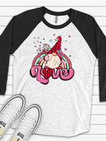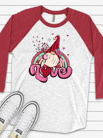 - Valentine Raglan, Cute Valentine Gnome, Gnome Spreading Love and Rainbows Design on premium Raglan 3/4 sleeve shirt, plus size, 2X, 3X