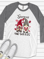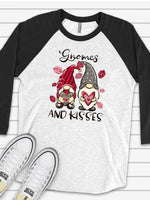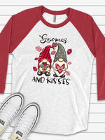 Valentine Raglan, Cute Valentine Gnomes, Gnomes and Kisses, Gnomes in Love Design on premium Raglan 3/4 sleeve shirt, plus size, 2X, 3X