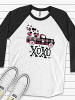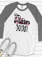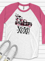 - Valentine's Day Raglan, Cute Pink Plaid Truck XOXO Valentine Design on premium Raglan 3/4 sleeve shirt, plus size, 2X, 3X