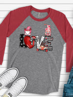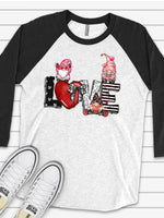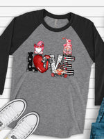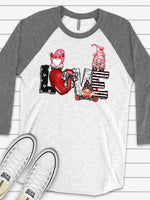 - Valentine's Day Raglan, Super Cute LOVE Gnomes, Valentine's Day Gnomes Design on premium Raglan 3/4 sleeve shirt, plus size, 2X, 3X