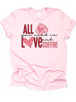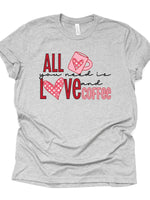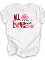 - Valentine's Day Tee, All You Need Is Love & Coffee, Valentine Design, premium unisex shirt, 3 color choices, 3x valentine, 4x valentine