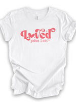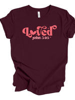 - Valentine's Day Tee, Christian LOVED, Loved John 3:16, Christian Valentine Design, premium unisex shirt, 3 color choices, plus valentine tee