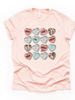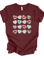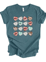 - Valentine's Day Tee, Cute Western Conversation Hearts, Cowhide Hearts Design, premium unisex shirt, 3 color choices, plus valentine tee