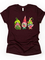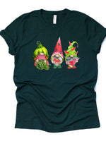 Watermelon Gnomes, Super Cute Trio of Watermelon Gnomes Design on premium unisex shirt, 3 color choices, 3x gnomes, 4x gnomes, watermelon