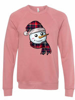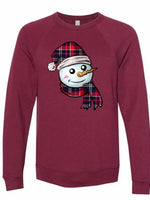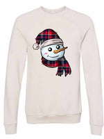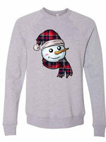 - Winter Snow Sweatshirt, Cute Snowman in Plaid Hat and Scarf Design, Unisex Sponge Fleece Raglan Crewneck Bella + Canvas, Fall Sweatshirt