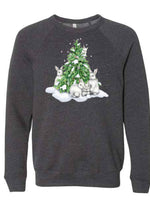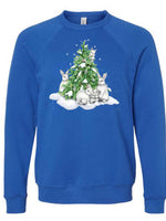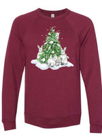 Winter Sweatshirt, Beautiful Rabbits and Snowy Tree, Rabbits Design, Unisex Sponge Fleece Raglan Crewneck Bella + Canvas, Winter Sweatshirt