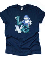 Winter Tee, Super Cute LOVE Snow with Snowman, Love Winter, Love Snowman Design on premium cotton unisex shirt, plus sizes, 2x, 3x, 4x