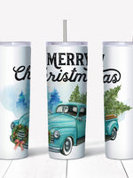 20 oz Skinny Tumbler, Merry Christmas Skinny Tumbler, Blue Christmas Truck Skinny Tumbler, Christmas Skinny, 20 oz Stainless Steel Tumbler