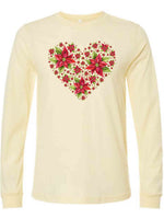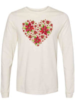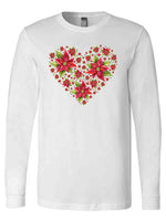 Christmas Long Sleeve Tee, Pretty Christmas Poinsettias in Heart Design on premium unisex long sleeve tee, 3x plus size long sleeve