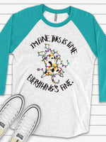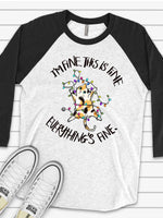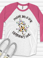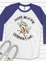 Christmas Raglan, Funny Christmas Cat, Cat Tangled in Lights, Everything Is Fine Design, premium Raglan 3/4 sleeve shirt, plus size, 2X, 3X