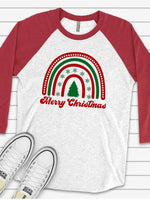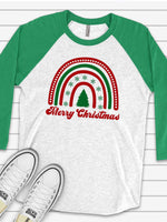 Christmas Raglan, Green and Red Retro Rainbow Christmas Design on premium Raglan 3/4 sleeve shirt, plus size, 2X, 3X