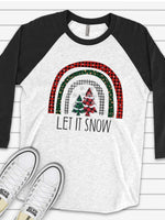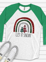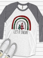 Christmas Raglan, Super Cute Plaid Christmas Rainbow, Let It Snow Rainbow Design on premium Raglan 3/4 sleeve shirt, plus size, 2X, 3X