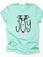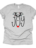 Christmas Tee, Cute JOY Reindeer with Lights in Antlers, Christmas Reindeer Design on premium cotton unisex shirt, plus sizes, 2x, 3x, 4x