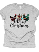 Christmas Tee, Fun Christmas Chickens with Lights, Chickens with Lights Design on premium unisex shirt, 3 color choices, 3x santa, 4x santa