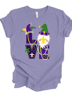 - Mardi Gras Tee, Super Cute LOVE Mardi Gras Gnome, Mardi Gras Gnome design, premium unisex tee, 3 color choices, 3x mardi gras, 4x mardi gras