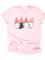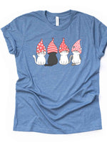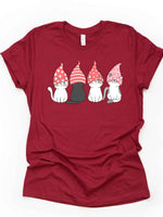 - Cute Valentine Cats in a Row, Four Valentine Cats in Gnome Hats design, premium unisex shirt, 3 color choices, 3x valentine, 4x valentine