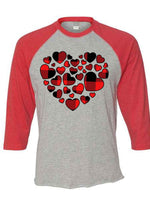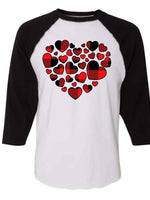 - Valentine Hearts Raglan, Cute Valentine Red Buffalo Plaid Hearts Design on premium Raglan 3/4 sleeve shirt, plus size, 2X raglan, 3X raglan