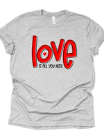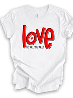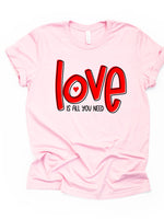 - Valentine's Day Tee, Cute LOVE Is All You Need, LOVE Word Art Design on premium unisex shirt, 3 color choices, 3x valentine, 4x valentine