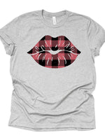 - Valentine's Day Tee, Pink Buffalo Plaid Lips, Valentine Lips Design on premium unisex shirt, 3 color choices, 3x valentine, 4x valentine