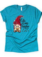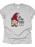 - Valentine's Day Tee, Valentine Gnome, Coffee Is My Valentine Design on premium unisex shirt, 3 color choices, 3x valentine, 4x valentine
