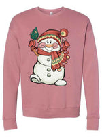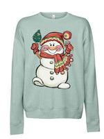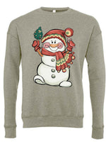 - Christmas Sweatshirt, Christmas Snowgirl in Scarf & Beanie Design, Unisex Sponge Fleece Raglan Crewneck Bella + Canvas, Fall Sweatshirt