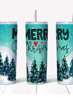 - 20 oz Skinny Tumbler, Merry Christmas Snowy Winter Scene Tumbler, Fun Christmas Tumbler, Christmas Skinny, 20 oz Stainless Steel Tumbler