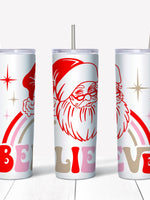 20 oz Skinny Tumbler, Super Cute Retro Santa with BELIEVE, Santa Believe Tumbler, Santa Claus Skinny, 20 oz Stainless Steel Tumbler