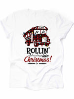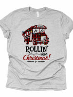 - Christmas School Bus Driver Shirt, Rollin' Into Christmas Red Plaid School Bus Design on premium unisex shirt, 2 colors, up to 5X plus size