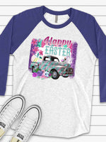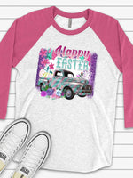 - Easter Raglan, Happy Easter, Retro Truck Easter Design on premium Raglan 3/4 sleeve shirt, plus size, 2x easter raglan, 3x easter raglan