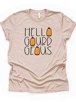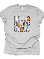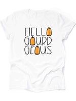 Funny Fall Tee, Cute Hello Gourd Eous, Hello Gorgeous Gourd Design on premium unisex shirt, 3 color choices, 3x fall, 4x fall