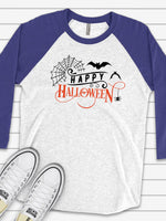 Halloween Raglan, Funny Happy Halloween Spider and Bat Design on premium Raglan 3/4 sleeve shirt, plus size, 2X, 3X