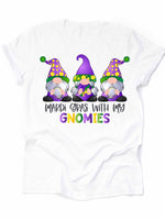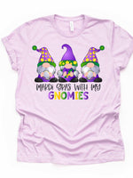 - Mardi Gras Gnome Tee, Mardi Gras With My Gnomies Design on premium unisex shirt, 3 color choices, 3x Mardi Gras, 4x Mardi Gras