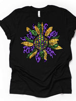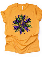 - Mardi Gras Gnome Tee, Pretty Mardi Gras Sunflower Design on premium unisex shirt, 3 color choices, 3x Mardi Gras, 4x Mardi Gras