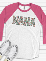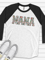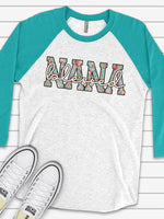 - Nana Raglan, Pretty Floral Blessed Nana, Pretty Grandma Floral with Blessed Design on premium Raglan 3/4 sleeve shirt, plus size, 2X, 3X